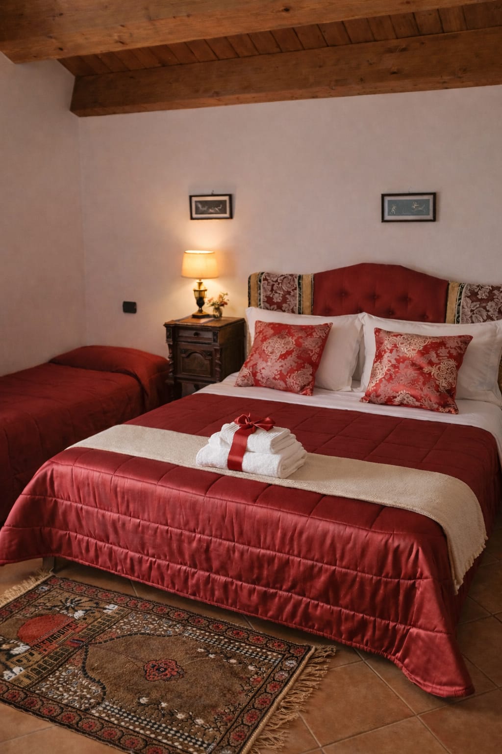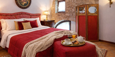 Today, staying at Antica Loggia means experiencing something far beyond a simple overnight stay. The rooms are spacious and evocative, retaining the charm of historic residences: high ceilings, refined furnishings, and original details turn each space into a lived-in museum. Some rooms, such as the large family suite, offer generous spaces designed to welcome guests and make them truly feel at home.