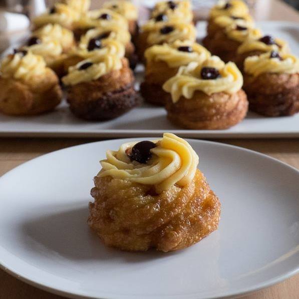 • Zeppole come in two versions: fried or baked, always filled with pastry cream and topped with amarena cherries.